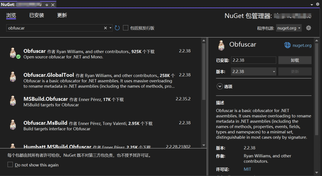 前言先查询一下常见的加壳工具:DotFuscator,官方自带,据说免费版混淆程度不高VirboxProtector,很好很优秀,但是收费NETReactor,可能会被识别为病毒Obfuscar,开源,可以用dotnettool或项目构建的方式进行使用那就先用Obfuscar试试水。正文方式一:nuget安装推荐,这种...