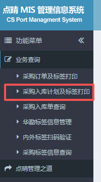 操作步骤:仓库管理——物料入库管理——采购入库管理——采购入库单管理;进入页面如下图所示:在此页面可进行采购入库记录查询,标签打印,以及单据打印。