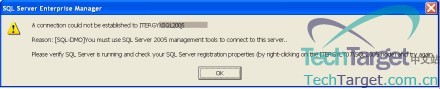 看来,你已经决定要从SQL Server 2000升级到SQL 2005了。 你可能已经在你的桌面电脑和测试环境中安装了一个SQL Server 2000的实例并想要进行适当的升级。或者你可能只是想安装一个新的SQL Server 2005实例。本文将主要关注安装新实例时可能遇到的问题,同时本文也将对两个版本之间交互的选项(比如连接服务器、多服务器管理、日志传递)进行分析。 在SQL 2000主机上安装SQL Server 2005 如果你想在你的SQL Server 2000主机上安装SQL Server 2005,那你的主机上应该至少安装了Service Pack 3a,最好能够安装SP4。 在将SQL Server 2005安装到SQL 2000主机上时,你可能会遇到如下问题: 安装向导无法识别默认的SQL Server 2000实例。由于安装向导可能无法识别默认的SQL Server 2000实例,他可能会要求你安装默认的SQL Server 2005实例。尽管安装完全成功,但新的2005实例实际上并未被安装。为此,你必须要卸载并重新安装2005实例,并在新的安装过程中,输入一个命名的实例。 SQL Server 2000代理不能重新启动。在完全安装后,SQL Server 2000的代理可能无法重新启动,一般来说,只要在代理服务器中重新输入密码就能解决这一问题。 在安装2005后,在数据库服务器运行时,2000的企业管理器不能工作。如果企业管理器在安装2005后不能工作,请参照微软在Co-exist of SQL Server 2000 and SQL 2005中所述的方法。 1.点击开始,点击运行,输入regedit 然后点击OK。 2.在注册表中找到如下子 HKEY_LOCAL_MACHINESOFTWAREMicrosoftMicrosoftSQLServer80ToolsClientSetup 3.右击客户端安装子键,选择新建,而后点击字符串值。 4.将你所创建的子键命名为SqlPath,然后按下回车。 5.双击SqlPath子键,然后在数值数据对话框处输入C:Program FilesMicrosoft SQL Server80Tools。 6.点击OK,然后关闭注册表编辑器。 7.点击开始,点击运行,输入regsvr32 "C:Program FilesMicrosoft SQL Server80ToolsBinnsqlmmc.dll",然后点击OK. SQL Server Management Studio没有安装。在安装SQL Server Management Studio之前,你需要首先安装.Net Framework 2.0。 SQL 2000和2005是可以在同一台主机上并存的,但对于两个版本之间的交互,有人曾问过我如下的问题: 问题使用2005工具时的错误信息使用2000工具时的错误信息可能性?1注册新的SQL Server(成功)连接Server 2005的连接无法建立。 原因:[SQL-DMO]你必须使用SQL Server 2005的管理工具来建立到这个服务器的连接。只能从2005到20002多服务器管理2005 – 主服务器, 2000 – 目标服务器: 主服务器<2005 Server>版本9.00.2047与目标服务器<2000 Server>无法兼容。2000 – 主服务器, 2005 – 目标服务器: 由于下面所示的连接失败,SQL Server注册失败 [SQL-DMO] 你必须使用SQL Server 2005的管理工具来建立到这个服务器的连接。无法并存3复制成功没有错误信息,SQL Server 2005实例并没有出现在可能的定阅服务器列表中。只能从2005到20004连接服务器成功成功可以并存5数据库还原备份 – 2005, 还原 – 2000: 备份数据库版本611拥有on-disk结构,但服务器支持版本539,不能还原或者升级数据库。RESTORE DATABASE非正常退出。备份 – 2000, 还原 – 2005: 成功只能从2000到20056日志传递由于版本不正确,‘第二服务器名’并不是一个有效的服务器实例。第二服务器实例必须运行在SQL Server 2005或更高版本上。SQL Server 2005实例并没有出现在可能的第二服务器实例列表中。不能并存 SQL Server 2000和2005:六个兼容性问题 SQL Server 2000和2005可以在同一台主机上共存。在第一部分:在SQL 2000主机上安装SQL Server 2005 ,我使用表格的方式列出了一些兼容性问题。下面,我将就表中所列的升级后SQL Server 2000和2005间的交互问题进行具体的解释。 注册新的SQL Server 多服务器管理 复制 连接服务器 备份和还原 日志传递 1.注册新的SQL Server 在企业管理器中: 下图显示了试图添加SQL 2005实例时的错误信息: 但是在Management Studio中,连接成功 2. 多服务器管理 我有一个新的实例希望添加到维护计划中,我们是否可以通过多服务器管理选项来实现它呢?下面让我们来看看具体操作: 在企业管理器中: 当我试图将SQL Server 2000作为主服务器,SQL Server 2005作为目标服务器时,得到了如下错误信息: 在Management Studio中: 错误信息如下: 3. 复制 在企业管理器的发布属性中,我尝试推出一个新的定阅服务器: 正如我们所料,SQL Server 2005实例并没有出现,所以它不能用做一个订阅服务器。 在Management Studio中: 添加新的订阅服务器: 成功。 注意:虽然有些命令的语法有所改变。比如:索引中的INCLUE,NOEXPAND提示,PIVOT和UNPIVOT,但令人惊讶的是,数据被成功的复制了。 4. 连接服务器 在企业管理器中: 我输入了SQL 2005的实例名和安全上下文: 连接服务器被配置成功。我也尝试了在连接服务器中运行命令,工作正常,在我使用Management Studio时,也得到了同样的结果。 5. 备份和还原 备份SQL Server 2000的数据库当然可以还原到2005。但是,一旦使用过SQL 2005,即使兼容级别仍然是80,数据库也不能再被还原到SQL 2000. 这是升级中,一个非常令人痛苦的问,因为你无法通过备份和还原“回滚”到旧版本。 在备份一个SQL 2005数据库(兼容级别=80)后,如果你试图将它还原到SQL 2000中,将得到如下错误信息: 6. 日志传递 当试图在企业管理器中添加日志传递的目标数据库时,SQL Server 2005实例名并没有在服务器名列表中出现: 当试图在Management Studio中添加第二SQL 2000实例时,会得到如下信息: 结论 SQL Server 2000和2005版本可以在同一台主机上很好的共存。在安