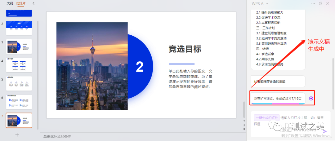 注意事项:用户登录新建PPT文档后,看不到WPS AI 功能,请检查当前的WPS AI账号与官网账号是否一致。如果不一致,请使用官网:https://ai.wps.cn/账号进行登录,大家要记清楚哦,以免会无法使用WPS AI 智能助手。11、让WPS AI 帮我写一份“研究生竞选团支书演讲稿”。总结,相对ChatGPT机器人和WPS AI机器来讲,各自有各的优缺点。例如:教育工作者、职场工作者、演讲者、学生群体等需要用到PPT办公的人群较常用.对于教师群体研发课件省事很多,有了WPS AI 机器人之后,你输出主题,课件框架可自动生成文稿,再结合ChatGPT软件输出的内容进行对比,进一步查漏补缺,一份精美的PPT演示文稿就自动生成啦。