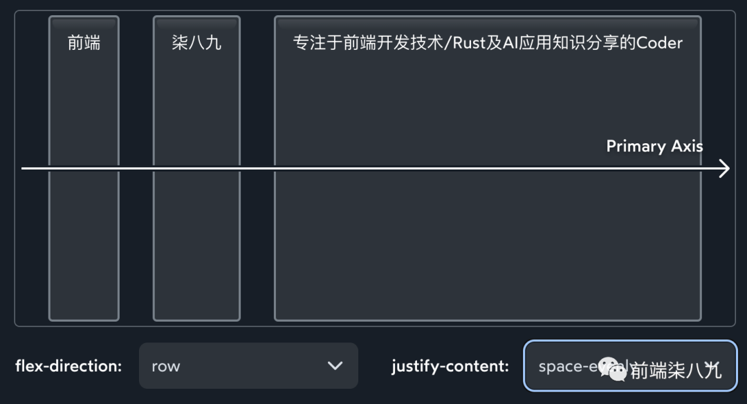 「Flexbox 中的一切都与主/交叉轴有关」。例如,justify-content将沿主轴分布子元素,无论主轴是水平还是垂直,它的工作方式都完全相同。