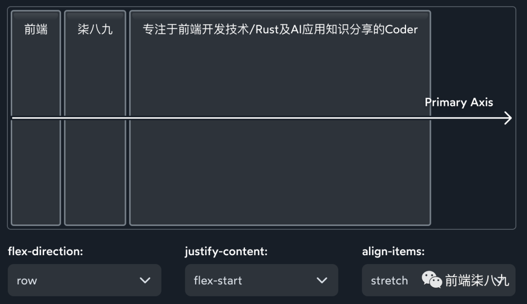 ?在Flexbox中,一切都「基于主轴」。算法不关心垂直/水平,甚至不关心行/列。所有规则都围绕这个主轴以及垂直运行的交叉轴结构。