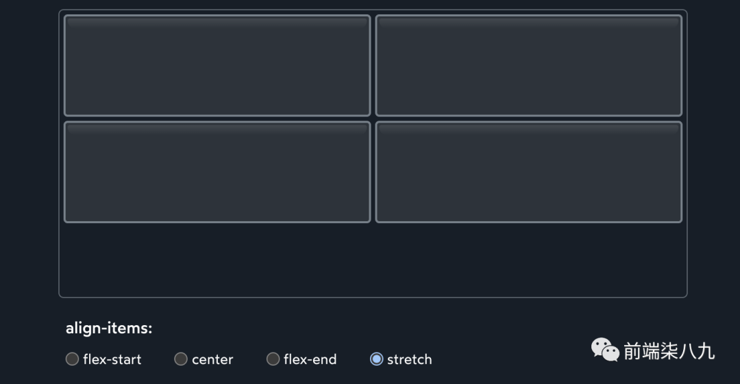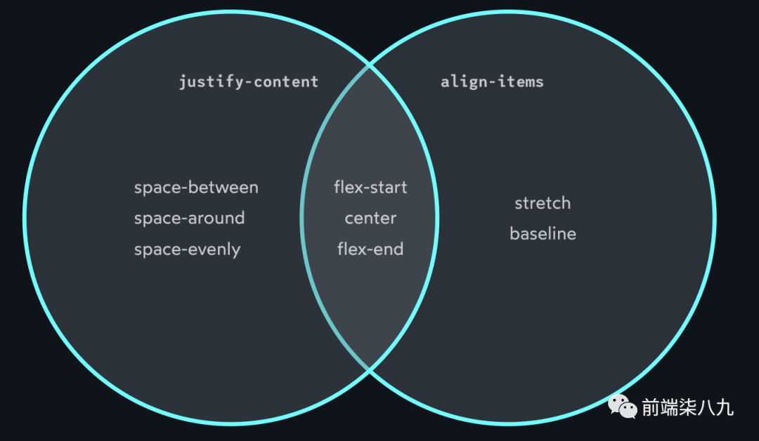 在align-items中,有一些与justify-content相同的选项,但并「没有完全的重叠」。