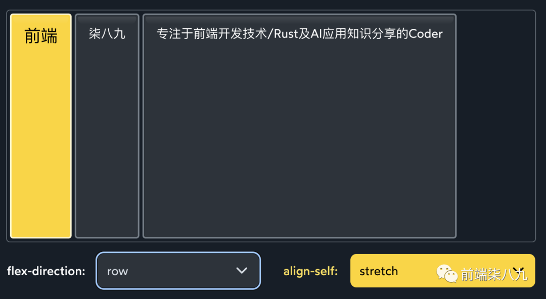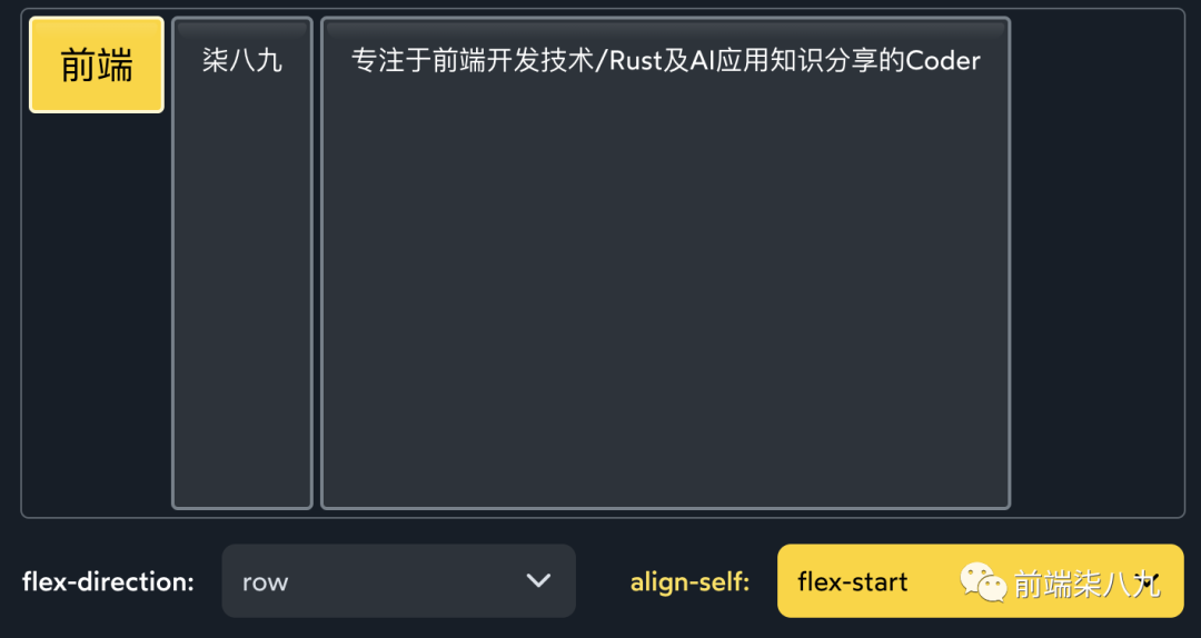 如前所述,Flexbox的关键在于「控制在行或列中元素的分布」。默认情况下,项目将在「一行中侧边堆叠」,但我们可以通过使用flex-direction属性切换到列: