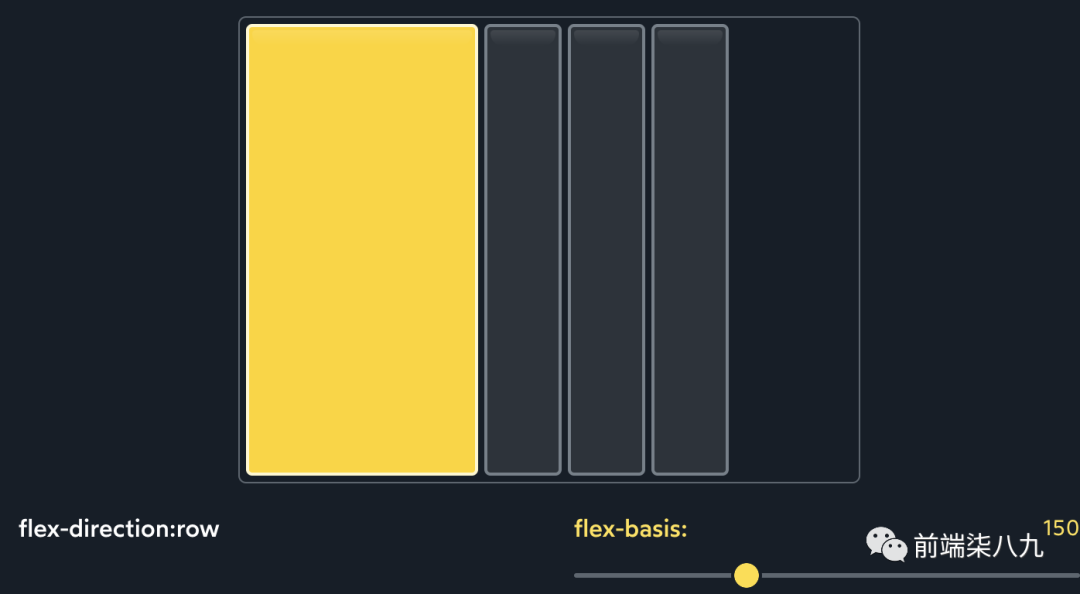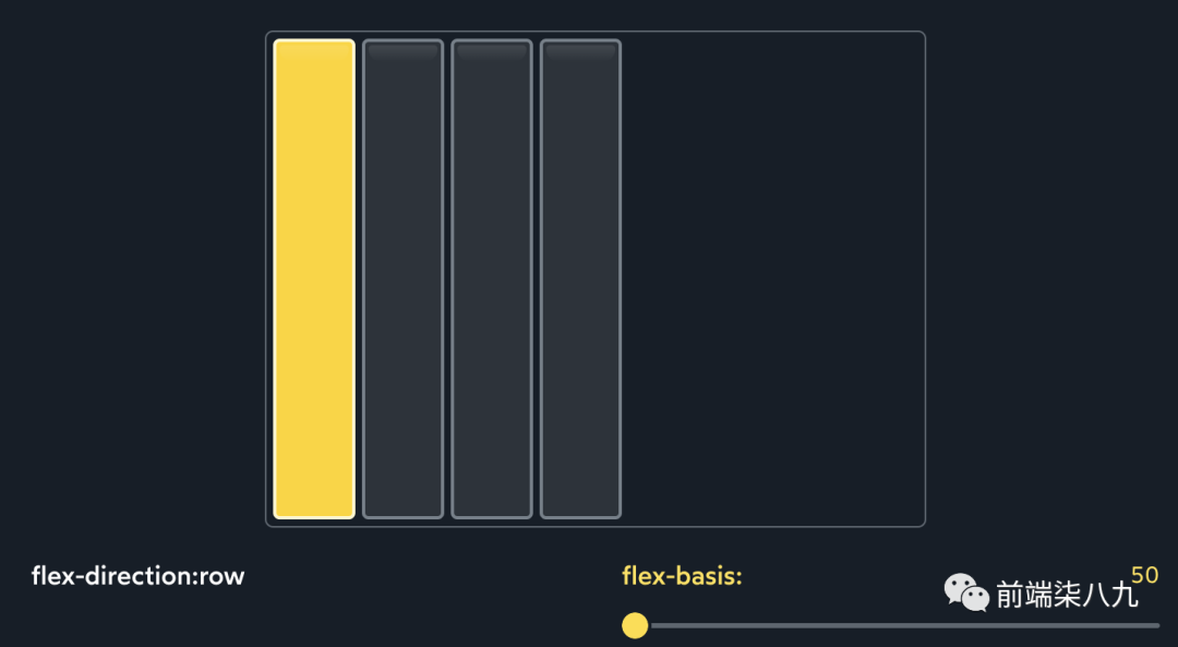 下图集中,每个子元素都被赋予了flex-basis: 50px,但可以调整第一个子元素的flex-basis。