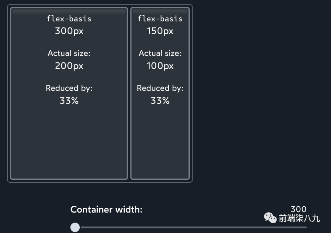 flex-basis和width设置了元素的假设大小。Flexbox算法可能会「将元素收缩到低于这个期望大小」,但「默认情况下,它们将始终按比例缩放,保持两个元素之间的比例」。