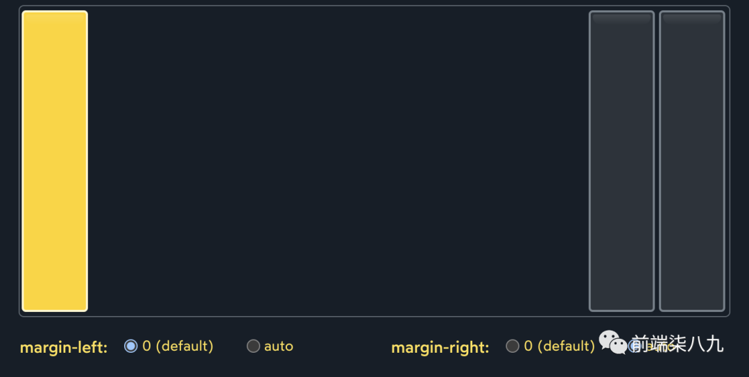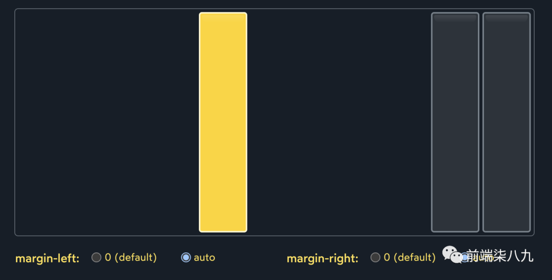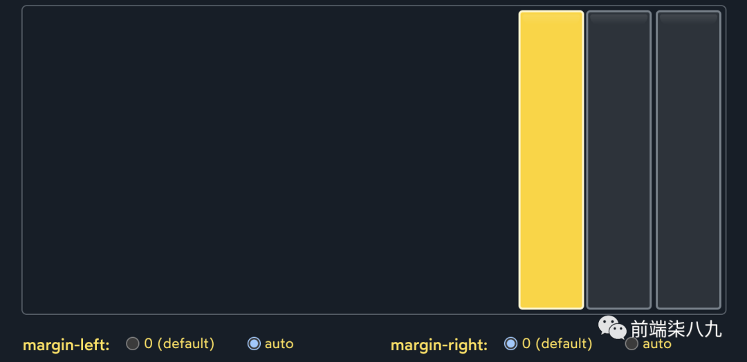 「自动边距将吞噬额外的空间,并将其应用于元素的边距」。它使我们能够精确控制在哪里分配额外的空间。