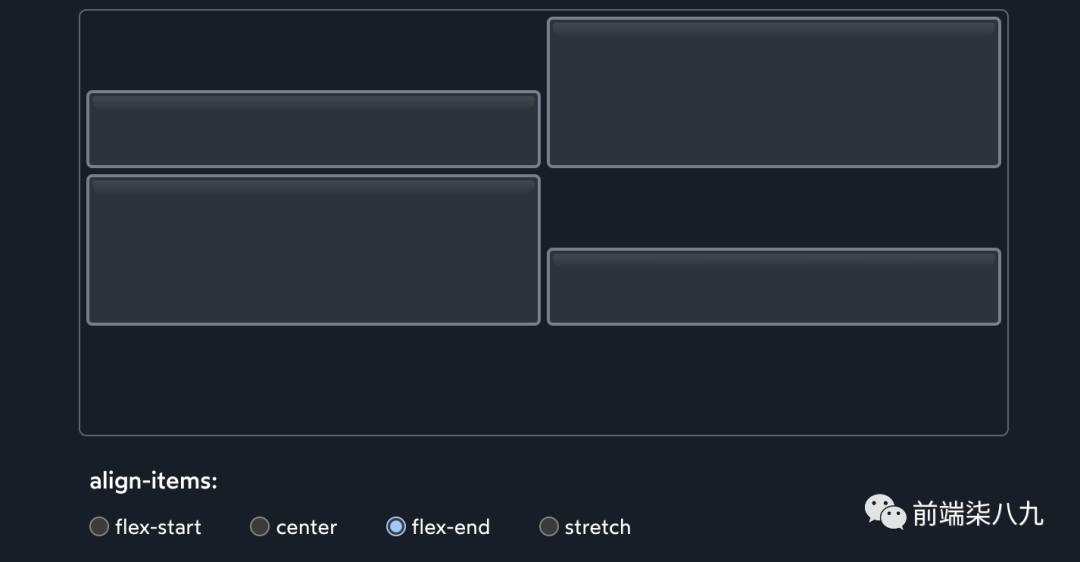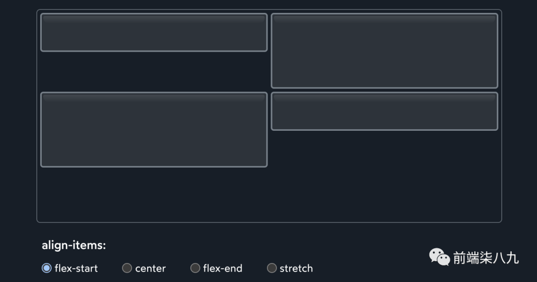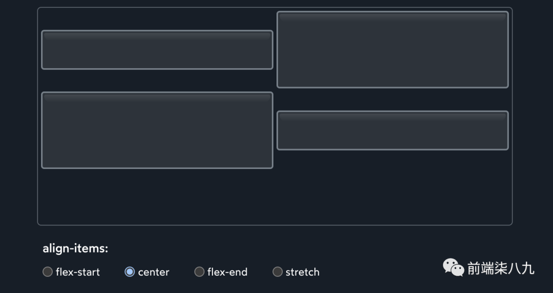 ?每一行都是其自己的小型 Flexbox 环境。align-items将在包围每一行的无形框内上下移动每个项目。