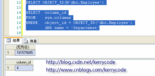 SELECT OBJECT_ID(N'dbo.Employee') SELECT column_id FROM sys.columns WHERE object_id = OBJECT_ID('dbo.Employee') AND name = 'Department'