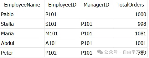 尝试使用下面这个查询找出哪些员工处理的订单数量超过他们的经理:
