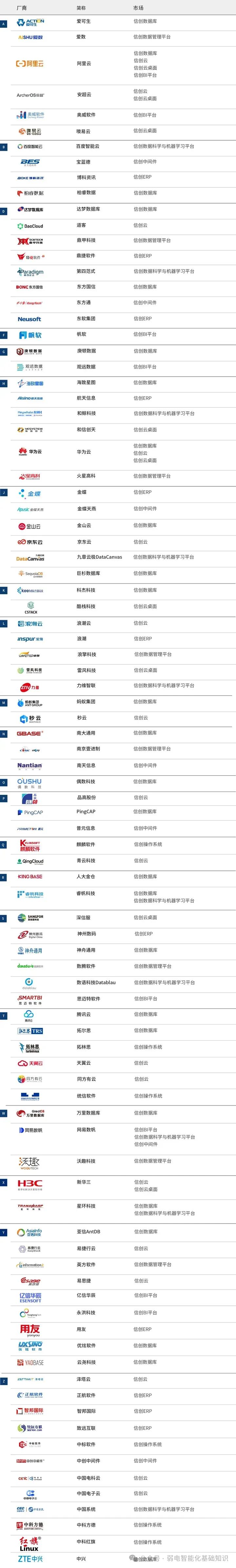 目录 1. 研究范围定义 2. 市场洞察 3. 厂商全景地图 4. 市场定义与厂商评估 5. 厂商入选列表 1.研究范围定义 1.1研究背景 近年来,受中美贸易战、科技战等内外部多重因素影响,进行信息技术应用创新(以下简称信创),打造全面自主可控的国产IT架构,已逐渐成为我国构筑核心安全屏障,实现经济数字化转型、提升产业链发展的重要战略方针。在这一背景下,自2020年开始,伴随着支持政务信息化安全可控、金融行业信息化核心技术安全可控的政策密集出台,以党政、金融为首全面信创趋势不断演进。各行业逐步摸索出从基础硬件、到基础软件、再到应用软件的纵向替换路径,以及从OA系统、到非核心业务系统、再到核心业务系统的横向路径。 在行业进展上,党政、金融由于起步最早,且有明确的政策要求,走在了信创的最前沿。其中,党政作为信创发展的排头兵,目前已基本完成省市级单位电子公文系统的国产化替换。未来会进一步下沉至县级、乡镇级党政单位的电子公文系统替换中。同时,市级以上党政单位的电子政务系统国产替换也会同步进行;金融行业,随着信创一期、二期试点的结束,头部金融机构(银行、保险、证券)基本已完成了OA系统的国产替换,少数已实现了单轨运行。未来将逐步向非核心业务系统(ERP、CRM等)的国产替换演进。在目前进行的第三期信创试点中,信创进程持续推进。 其次,电信行业的信创在新一轮的政策引导下,也开始稳步发力。电信行业信创,主要围绕三大运营商进行,目前已基本实现了底层服务器、整机等硬件的国产替换。同时,除硬件替换外,运营商还开启了电信领域国产化全面布局,在各地纷纷建立了相关“信创实验室”,并启动软件迁移适配工作,推动电信行业信创持续落地。 最后,教育、能源、交通等行业的信创,虽尚处发展初期,但一些头部企业和机构已开始进行国产化IT设施替换试点。未来随着政策进一步出台,这些行业的信创势必也会全面开展。 1.2市场全景地图 图 1:信创市场全景地图 为此,爱分析将于2022年11月发布《2022爱分析·信创厂商全景报告》,为甲方选型提供参考。如“信创市场全景地图”所示,爱分析按照IT架构,自下而上将信创市场划分为:基础硬件、基础软件、上层应用软件三类基本市场,以及技术支撑层、运维、信创云、云桌面、安全等衍生市场。 1.3本次报告重点覆盖的特定市场 在报告中,爱分析综合考虑甲方关注度及信创落地情况等因素,将重点选取数据库、操作系统、中间件、信创云、云桌面、数据管理平台、数据科学与机器学习平台、ERP、BI平台进行深入研究。 1.4厂商入选标准 本次入选报告的厂商需同时符合以下条件: 厂商的产品服务满足各市场定义的厂商能力要求; 近一年厂商具备一定数量以上的信创付费客户(参考第4章各市场定义部分); 近一年厂商在特定市场的营业收入达到指标要求(参考第4章各市场定义部分)。 (注:“近一年”指2021年Q3至2022年Q2) 2.市场洞察 2.1信创数据库多点开花,需稳步提升产品能力 纵观信创产业链,目前我国在上层应用软件领域,由于供给侧厂商较多,且技术壁垒相对较低,因此大多已能够实现完全替换。但在基础设施层的芯片、操作系统、数据库等核心领域,我国相关产业发展相对较晚,导致市场供给长期被国外厂商垄断。尤其是在数据库领域,大多数企业已经基于Oracle、DB2等数据库,构建了完善的数据应用体系。然而,作为企业用于存储和管理数据的核心系统软件,数据库对上层应用或商业决策起着关键的支撑作用。因此,实现数据库的全面国产化,也成为了大多企业当前信创替换的重点。 区别于传统意义上的数据库产品,信创数据库主要由三部分组成,分别是数据库内核、数据库集群管理平台以及数据库周边工具。 数据库内核,主要是用于对企业数据资产进行存储,是企业进行数据库替换的核心所在。因此,在核心要求上,首先需要国产数据库内核具备较高的技术稳定性和成熟度,能够满足企业替换要求;其次,需要具备较高的功能完善程度,能够适用于不同的业务场景;最后,还需要具备较高适配性,能够和国产基础硬件全面兼容。 数据库集群管理平台,主要是用于对数据库集群进行统一管理。对于大型企业来说,业务体系庞大且更为复杂,在进行数据库体系国产替换时,常需要的大量的国产数据库内核。并且由于我国数据库产业发展较晚,企业对于国产数据库缺少足够认知,导致常会出现在不同业务系统中使用不同类型国产数据库的情况,数据库运维压力也大幅增加。因此,信创数据库集群管理平台需要能够对不同类型的国产数据库内核进行统一管理的同时,具备一站式的运维能力。 数据库周边管理工具,主要用于提升企业国产数据库使用体验。现阶段,虽然在数据库内核性能方面国产产品与国外产品差距整逐渐缩小。但由于缺少足够的周边工具,企业使用体验依旧不佳。因此,包含开发、迁移、审核、大数据搜索引擎等在内的完善周边工具,也是企业构建整体国产化数据库体系,提升数据库使用体验的必备要素之一。 伴随着信创产业的大力发展,我国数据库行业迎来了重大发展机遇,众多行业开始纷纷进行国产数据库更换。但在实际替换过程中,还存在不少挑战: 国产数据库内核性能相较于国外产品仍有差距。国产数据库发展较晚,尚未经历过充足的使用场景验证