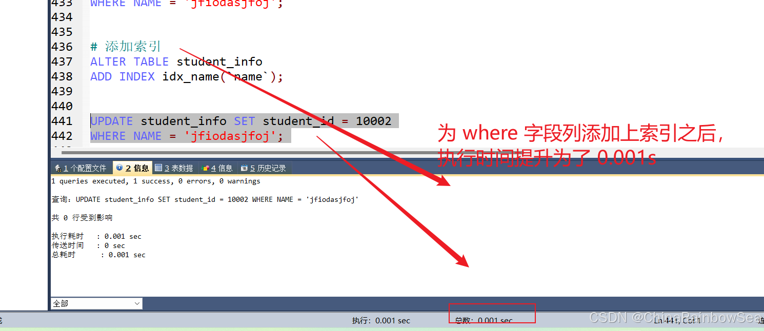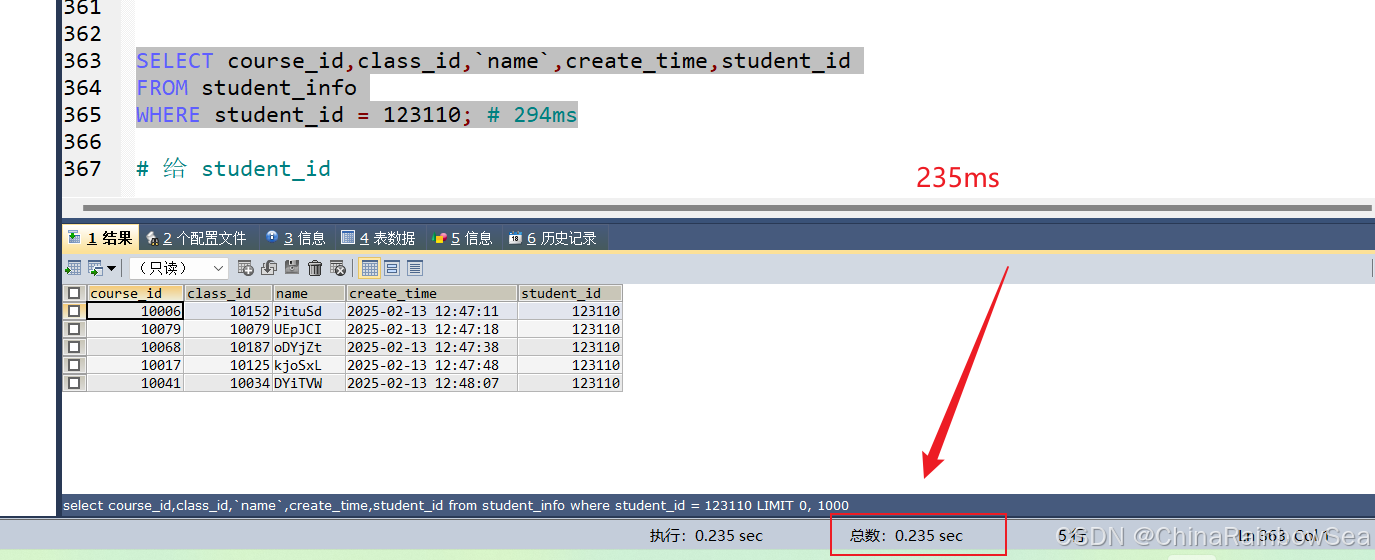 比如 student_info数据表(含100万条数据),假设我们想要查询 student_id=123110 的用户信息。