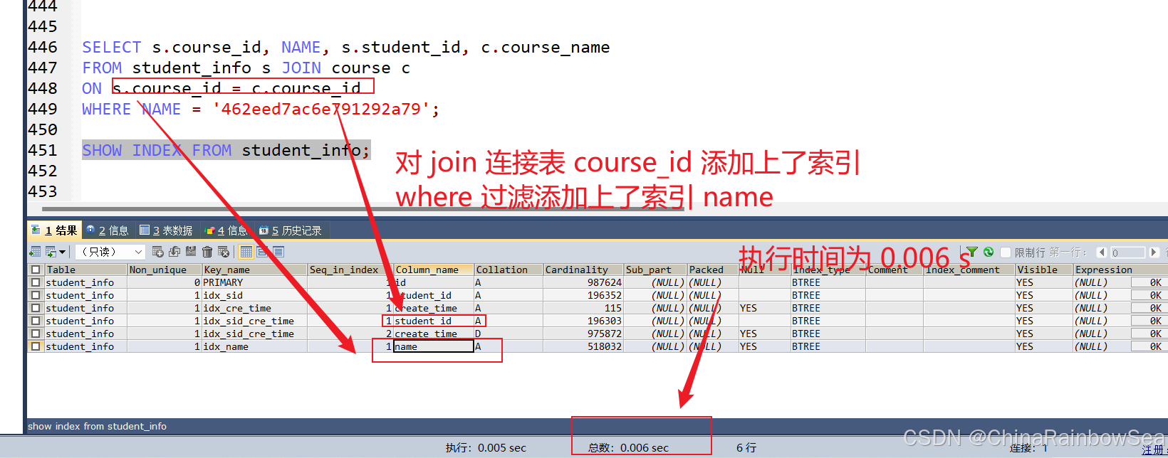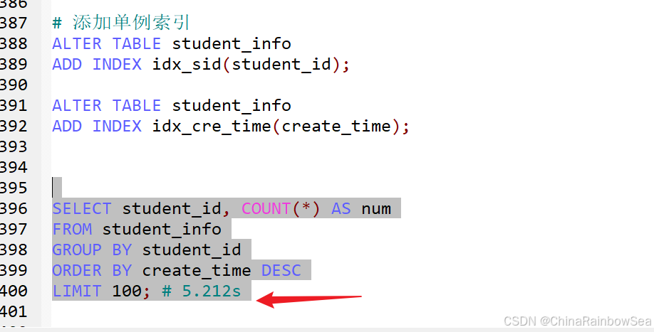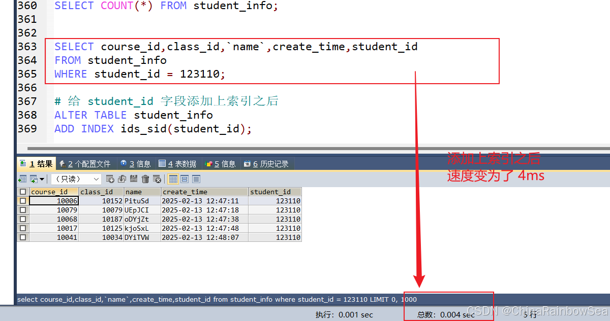 # 给 student_id 字段添加上索引之后