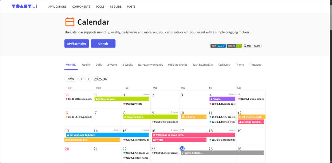 TOAST UI Calendar 是一个用于构建日历界面的库,支持日、周、月视图和任务管理,压缩后约150KB。