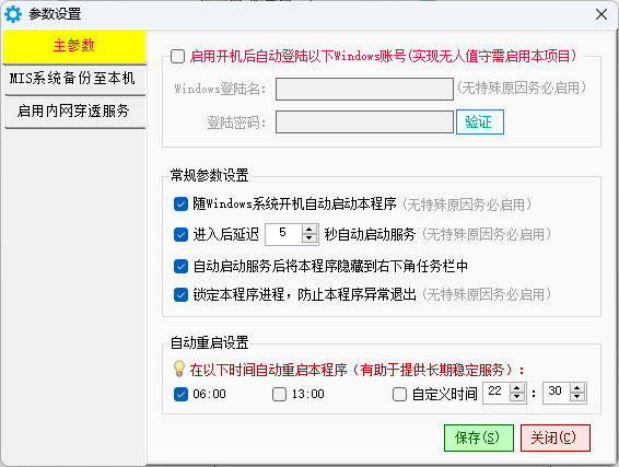 • 启用开机后自动登陆以下windows账号(实现无人值守需启用本项目)