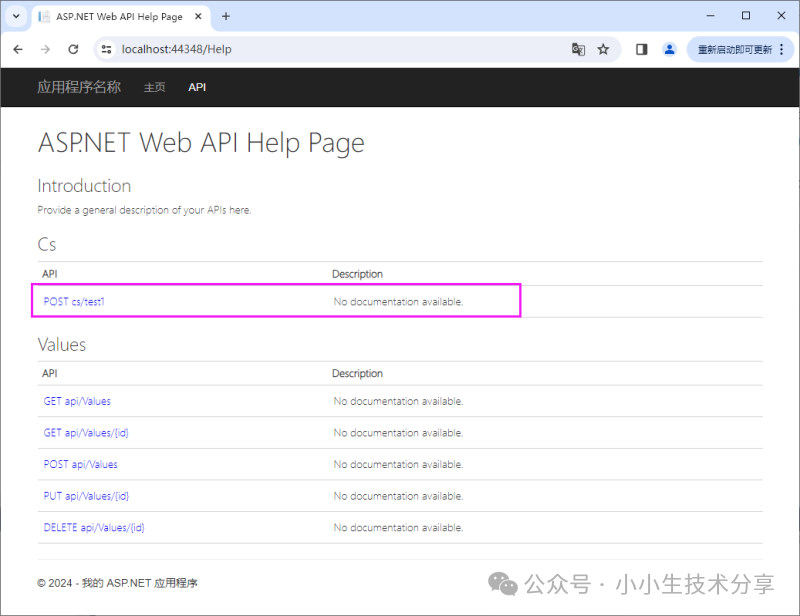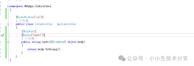 1.新建一个Web Api接口 CsController.cs 2.新建一个Post接口,然后返回值就是入参,路由地址cs/test1 3.新建一个Get接口 阅读原文:原文链接 该文章在 2025/7/7 11:55:46 编辑过 |
