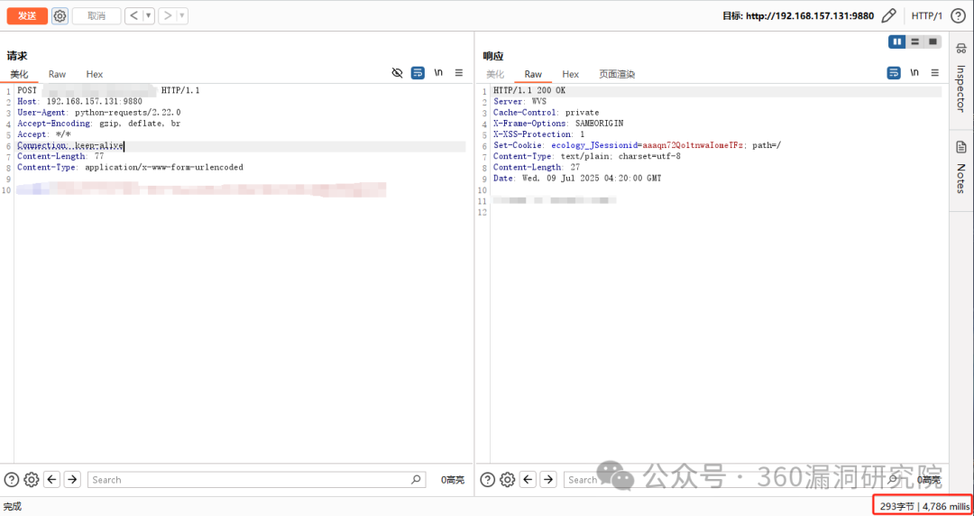360漏洞研究院已复现泛微 E-cology9 SQL注入漏洞,通过延时注入的方式(延时 4 秒)进行了验证。