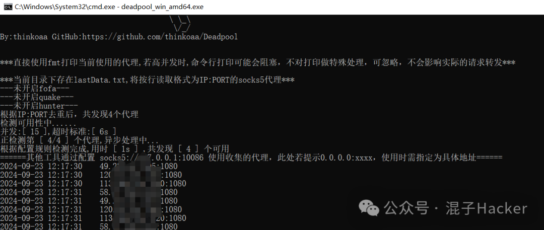 komoproxy、Deadpool、Sppmagic komoproxy、Deadpool、Sppmagic三款工具都是使用Go编写的高效socks代理工具,会自动轮询代理IP进行代理转发,并且支持从FOFA等测绘平台进行搜集代理IP。工具使用简单,一键启动即可拥有自己的代理池。这里比较推荐Deadpool和Sppmagic这两个工具支持的数据来源比较多,使用也很简便 01 — komoproxy 工具地址:https://github.com/komomon/komoproxy komoproxy是一款go编写的socks5代理池轮切工具,支持ipv6代理,支持fofa采集代理,支持导入自定义的socks5代理文件。代码暂不开源。 使用方法 1、设置配置 首次运行之后会在目录下新建config.ini文件 打开config.ini文件写入key或代理文件,可自定义代理的监听端口 2、运行工具 参数说明,如果设置了配置文件可不管 这里使用的socks文件,默认是proxy.txt文件,所以直接运行即可 3、配置代理 02 — Deadpool 工具地址:https://github.com/thinkoaa/Deadpool Deadpool代理池工具,可从hunter、quake、fofa等网络空间测绘平台取高质量socks5代理,或本地导入socks5代理,轮询使用代理进行流量转发。我是强烈推荐这款工具的,支持的数据来源比较多不仅支持测绘平台还支持直接从文件导入,解决了没有会员的烦恼。 使用方法 1、设置配置 打开config.toml文件,配置测绘平台的信息 没有这些平台的账号也没关系,如果自己用代理IP可以支持从文件中导入代理IP,打开lastData.txt文件,写入可用的IP 2、运行工具 工具会自动进行爬取验证可用IP并写入到lastData.txt文件中,默认的代理端口是10086,可以在配置文件中进行更改 3、配置代理 03 — Sppmagic 工具地址:https://github.com/sh1yan/Sppmagic 本工具是 SmallProxyPool 的魔改版本,原工具只支持从fofa上持续自动采集2000条免费socks5地址,然后循环代理,由于fofa的API需要高级会员权限才能使用,我自己用起来不太顺手,故进行二次开发,增加了native(本地读取socks5地址)和360quake一次性自动采集的模块,然后进行循环代理。 使用方法 1、设置配置 打开config.ini,配置fofa或quake的api信息,没有的可以不配置指定对应的代理IP文件即可 2、运行工具 go build main.go生成exe文件 运行main.exe文件,参数说明如下 运行之后会有一个交互式页面,对应的参数如下 3、配置代理访问 <<< END >>> 阅读原文:原文链接 该文章在 2025/7/14 18:43:21 编辑过 |