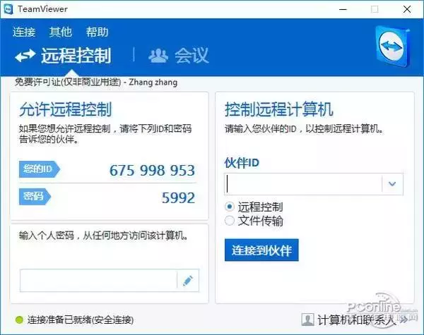 这里还有一款好用的工具--TeamViewer,你只需要在对方电脑上也安装上TeamViewer,然后登陆你的帐号,这样就可以随时的远程遥控对方的电脑。