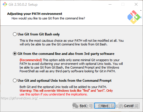 Git下载可以在官方网站进行,选择对应系统版本和位数下载即可。 官方网站: https://git-scm.com/ 如果国外网站下载速度过慢,或是无法正常下载,可以选择在镜像站进行下载。 CNPM Binaries Mirror: https://registry.npmmirror.com/binary.html?path=git-for-windows 下载完成后,进入到安装步骤环节。 Git安装 1.双击下载后的exe文件,进入安装界面。 2.阅读安装说明,阅读完毕,点击【NEXT】进入下一步; 3.选择并设置安装路径,选择完毕,点击【NEXT】进入下一步; 4. 选择安装组件,根据个人需要进行选择 Additional icons:是否创建桌面快捷方式 5. 选择是否在开始菜单中添加Git 若无需要添加,则勾选【Don’ t create a Start Menu folder】选项;也可以选择其他文件夹,点击Browse自行修改,选择完毕,点击【NEXT】进入下一步; 6.选择默认编辑器 默认Vim,可根据实际进行修改,选择完毕,点击【NEXT】进入下一步; 7.设置仓库初始分支 默认选项中的Let Git decide设置初始分支为master,如需选择修改,可选择下方Override the default branch name for new repositories,选择完毕,点击【NEXT】进入下一步; 8. 设置PATH环境 默认为【Git from the command line and also form 3rd-party software】,即通过命令行及第三方工具使用Git,选择完毕,点击【NEXT】进入下一步; 9.选择ssh可执行文件exe 默认选项为使用Git自带的ssh.exe,也可以根据个人需要选择其他选项,选择完毕,点击【NEXT】进入下一步; 10. 选择HTTP连接 选择默认SSL连接,选择完毕,点击【NEXT】进入下一步; 11. 配置行尾换行符 选择默认选项【Checkout Windows-style, commit Unix-style line endings】,选择完毕,点击【NEXT】进入下一步; 12. 选择Git Bash使用的终端模拟器 通常使用默认的Use MinTTY方式,选择完毕,点击【NEXT】进入下一步; 13. 设置git pull的默认行为 14.配置Git凭证 保持默认,点击【NEXT】进入下一步; 通常选择默认,选择完毕,点击【Install】进入下一步; 16.完成安装 至此,Git安装完成。 阅读原文:原文链接 该文章在 2025/8/25 13:09:10 编辑过 |