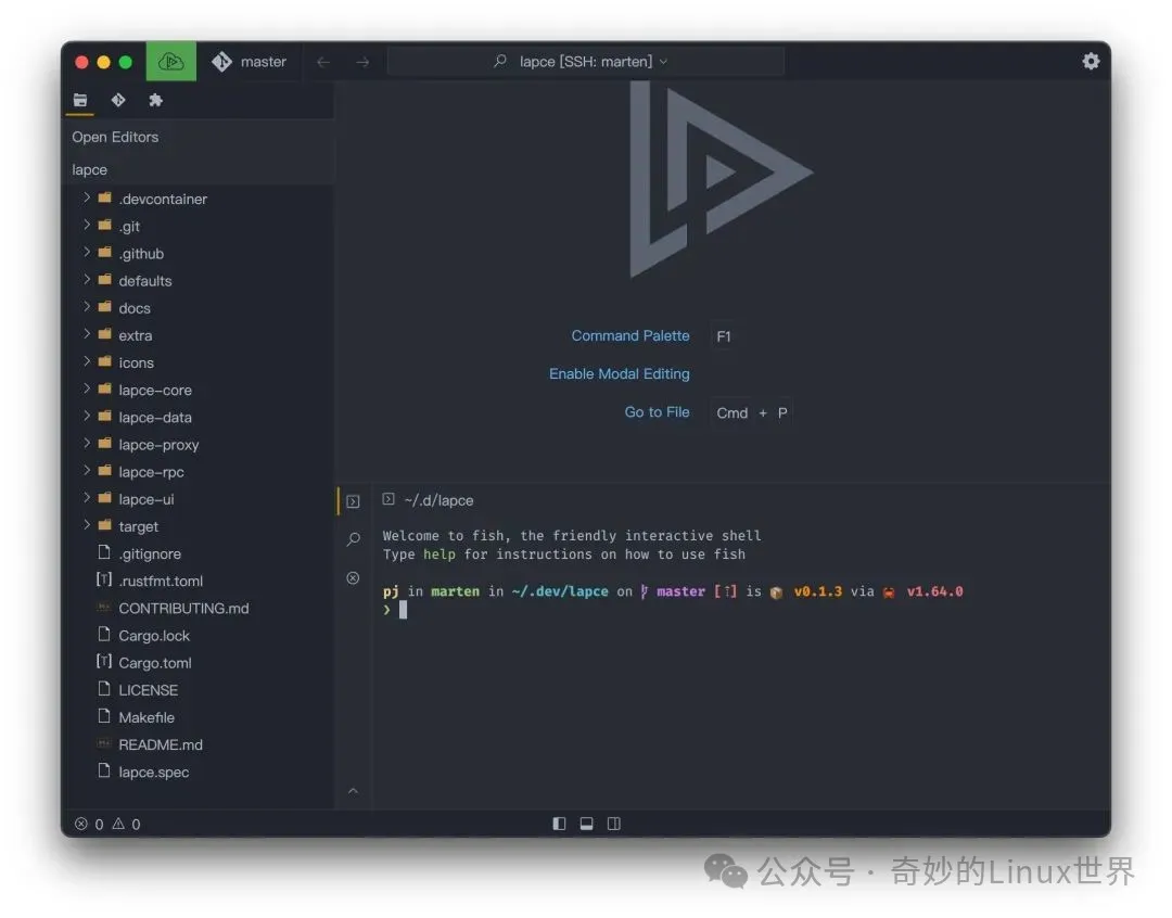 核心功能:Lapce 的杀手锏Lapce 的功能设计贴近程序员的实际需求,既简洁又实用。以下是它的核心亮点:
