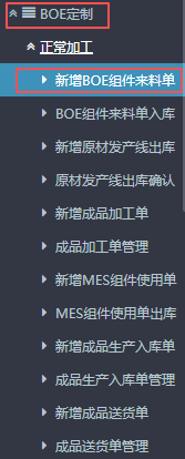然后点击打开“新增BOE组件来料单”。 2.进入“新增BOE组件来料单”界面后,先填写好基本的信息:入库仓库、收货日期。 以及有需要的话可以根据情况填写来料的备注信息。 3.填写BOE组件来料单的信息,首先点击“物料编码”,接着就会弹出查询物料的窗口。 按照图里的顺序在物料大类选择“原辅料”,然后点击查询(如果找不到的话可以填写对应的编码和名称)。