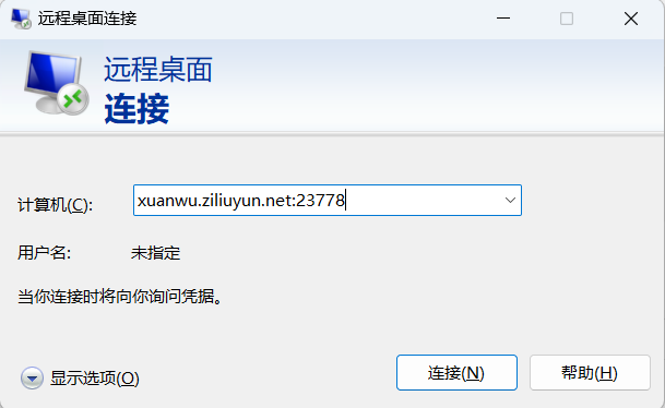 本软件支持通过外网远程控制内网电脑,用于远程访问内网电脑场景。 1. 软件下载 下载地址 https://ziliuyun.net/app/safedesktop.exe 本地下载:safedesktop.rar 2. 软件运行 重要提示: 1、在杀毒软件中允许本软件运行 软件首次运行时出现小程序二维码,请微信扫码 ![]() 后续根据应用界面操作,简单易用。 3. 连接远程桌面 3.1 查看连接地址 为保证用户安全,远程桌面对公网接口默认是关闭状态。在微信小程序中点击“开放远程连接”。 ![]() “首选连接地址”是固定的,方便用户操作。 如果首选连接地址连接失败,可以尝试用“备用连接地址”。 重要提示: 1、连接地址五分钟之内之内有效,超时后需要重新查看。本设计的重要作用就是安全自动关闭远程桌面连接端口,有效保护电脑免受网络攻击。 3.2 连接远程桌面 使用支持rdp协议的客户端即可远程连接电脑。以windows自带客户端软件为例说明。 3.2.1 windows系统自带远程桌面客户端软件 ![]() 3.2.2 输入远程桌面地址 ![]() 安卓/苹果设备有微软官方发布的客户端。