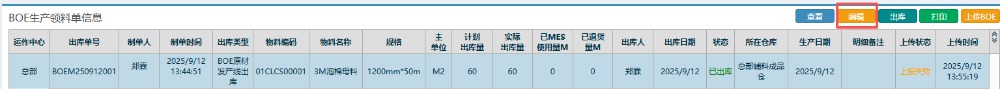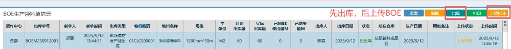 点晴模切ERP-BOE原材发产线出库流程