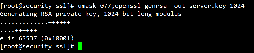 5、用之前生成的CA证书对证书签署请求进行签名,得到服务端证书openssl ca -in /usr/ssl/server.csr -out server.crt -days 3650