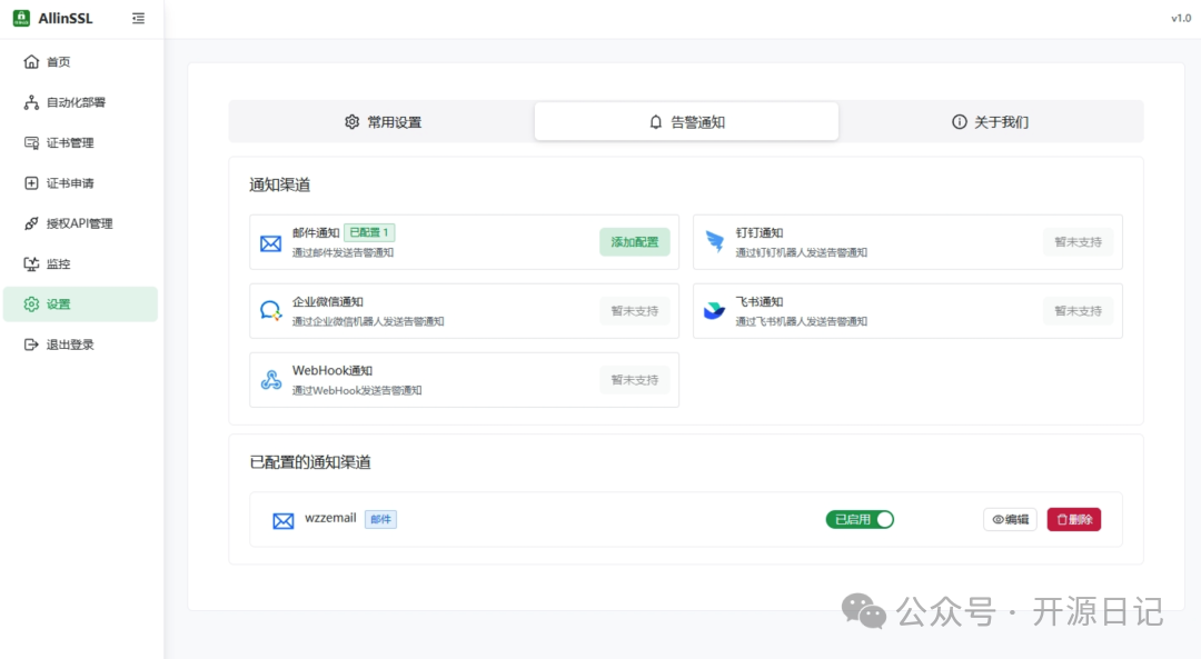 AllinSSL来了!它帮你自动化申请、续期、部署,还能轻松监控证书状态。加上支持多平台和通知提醒功能,简直是为运维人专属定制的宝藏神器!再也不怕手忙脚乱了!