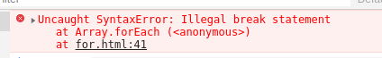 首先需要注意的是在forEach中不能使用continue和break,否则会报如下错误。