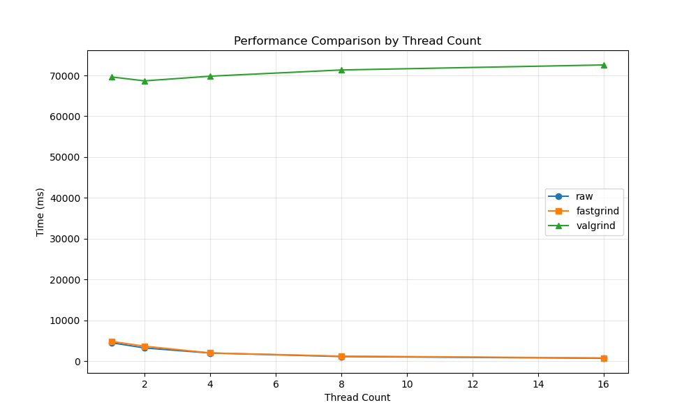 fastgrind仓库的testcase中,提供了一个包含bin query、分组算法的box grouping测例,调整线程数量,测试得到的benchmark如上图所示。