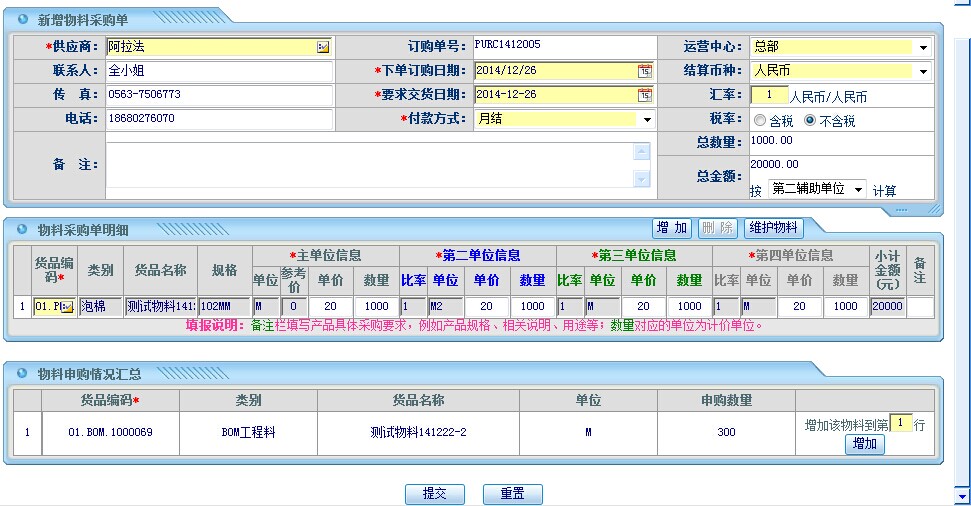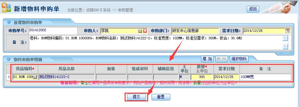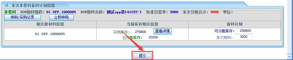 按照此分析方式,填写其他相应物料,点击提交即可;如下图所示: