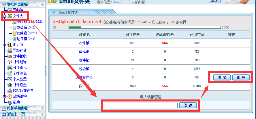 点晴永久免费OA的Email如何自己创建imap文件夹,通过设定收信规则将邮件收取到自定义文件夹中?